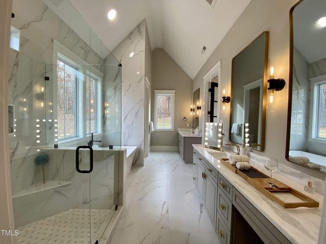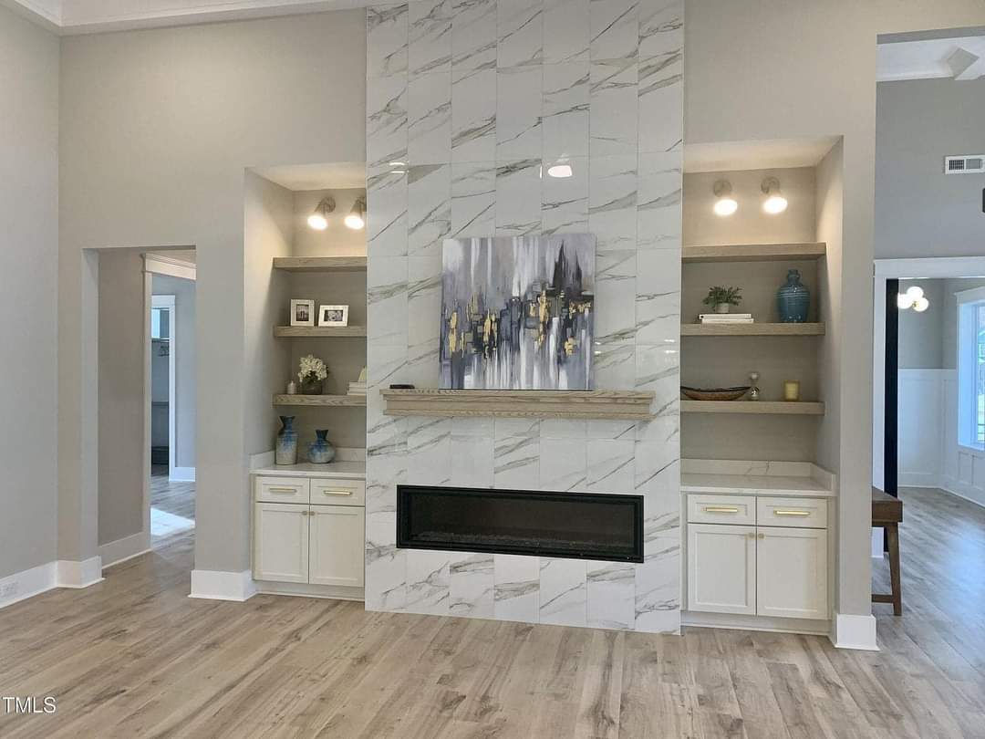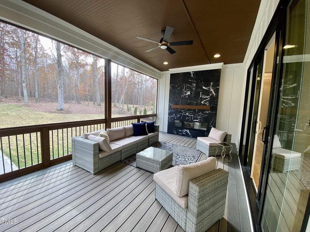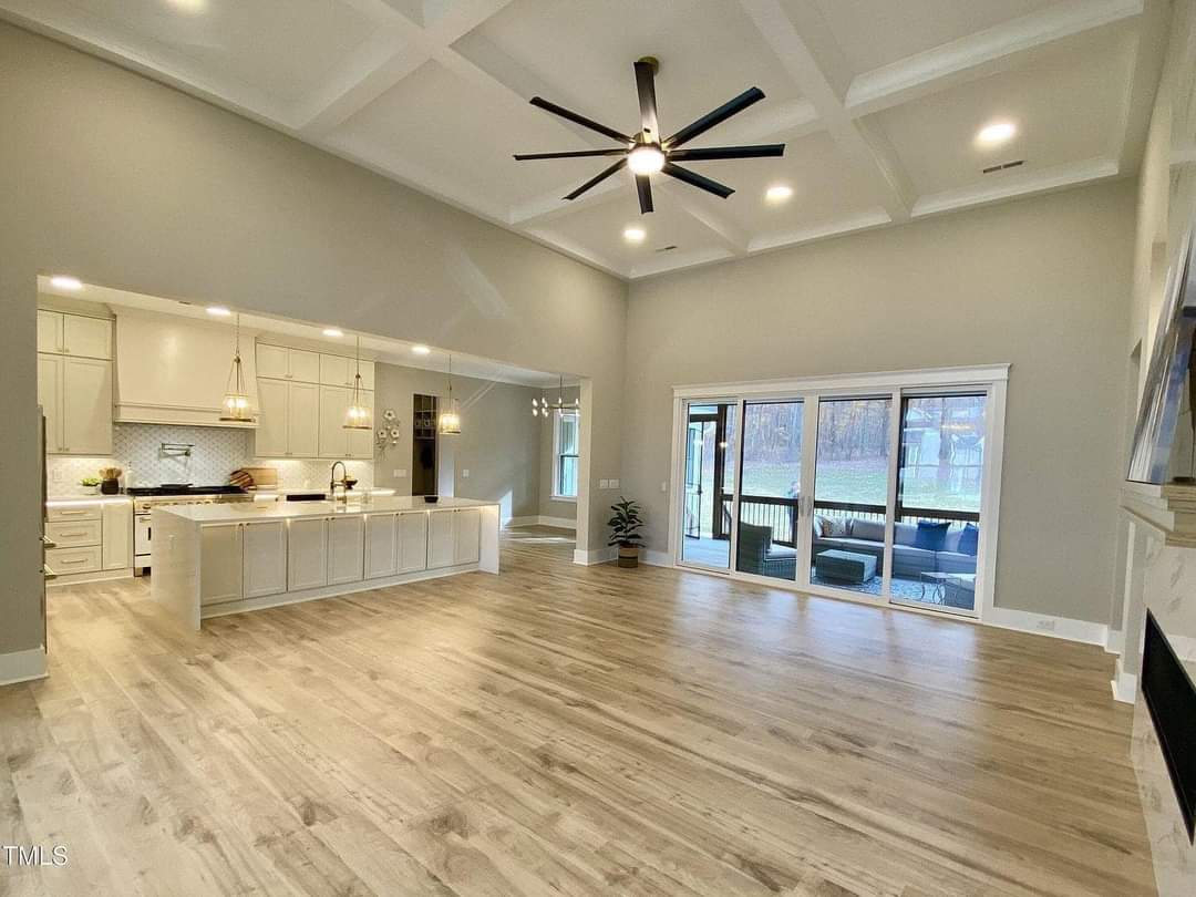 Modern farmhouse blends classic architectural elements with bright, open living spaces designed for comfort and functionality. The spacious living room flows seamlessly into the kitchen and dining areas while large rear openings connect the interior to a covered outdoor living space.