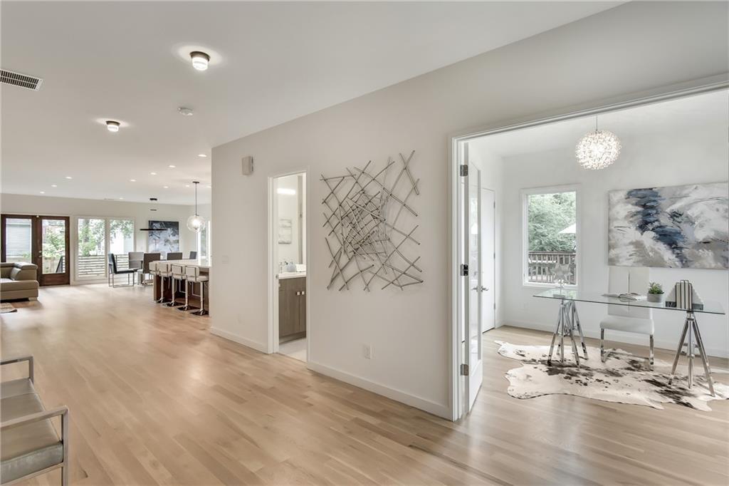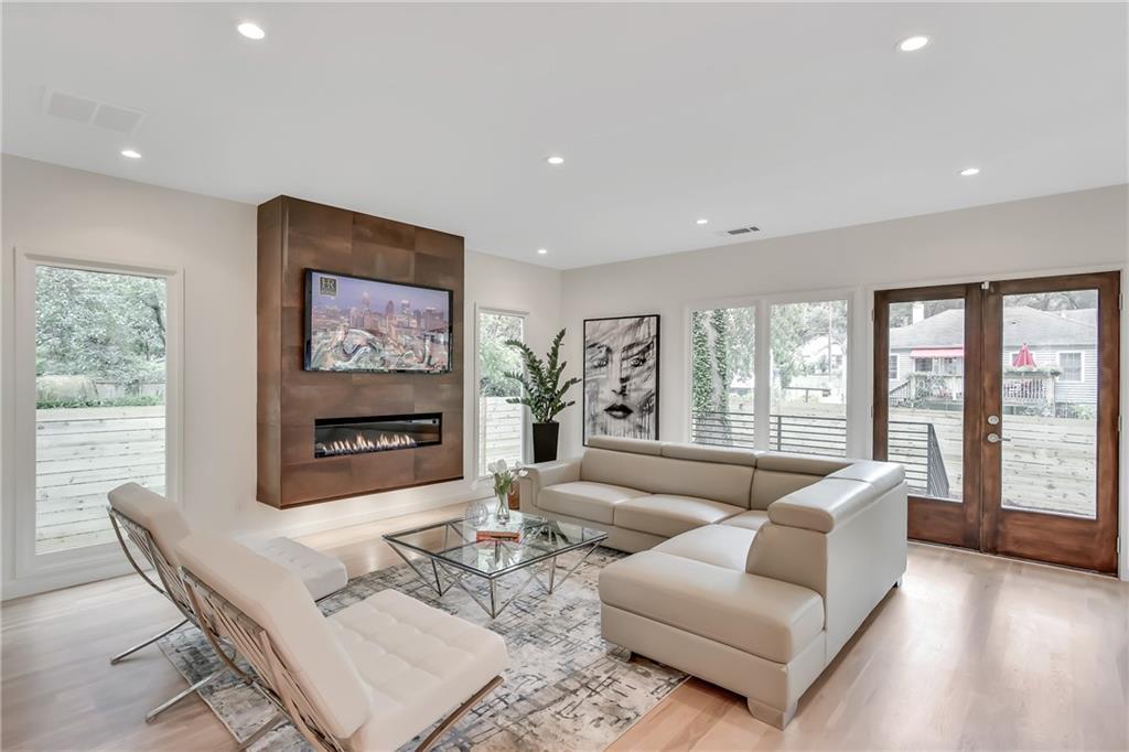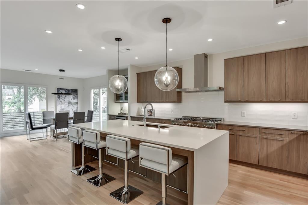 The sleek design of this contemporary home harmoniously blends traditional and modern aesthetics. Expansive windows offer stunning views and ample natural light. A covered balcony transitions smoothly into the Master suite